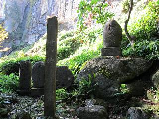 山門から7分登った所に 芭蕉の句をしたためた短冊を埋めて石の塚をたてた せみ塚が