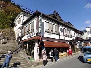 山寺登山口に行く道路は凄い人混みで どうしたものかと思っていたら 高砂屋本館の駐車場