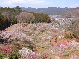 天満宮から斜面に作られた道を登った所にある天満公園からは 北に梅郷の市街地を見渡せ、