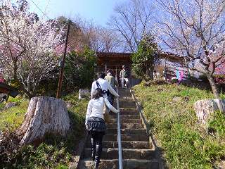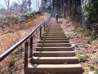 中腹の東屋から 梅園と植林地の境にある傾斜のきつい階段を登ります。