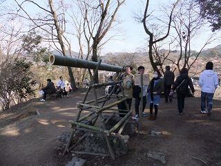 中央にある竹で作った大砲のような物を覗くと雷電山が見えました。