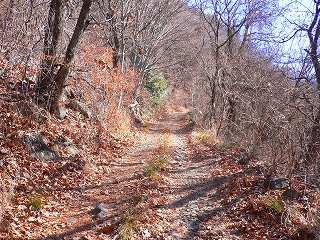(南側の下山口、右の木に 手書きの標識)