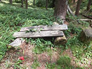 ___-(峠の分岐に立つ道標)____________(分岐にあるベンチ)