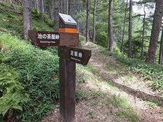 林道の終点から25分で 峠の分岐に着きました。