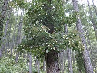 _(カラマツ林に密生するアスカイノデ)______(ここで見たツルアジサイ)