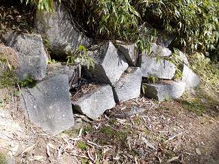 さらに20分歩いた所にあるムジナノ巣の水場の先に 腰を下ろしやすそうな石組があった