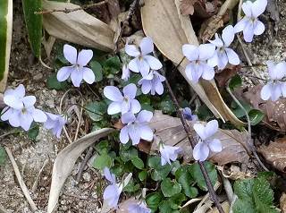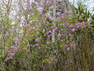 林道の脇にはスミレが咲き、見上げると ヤマザクラとミツバツツジが咲いて・・