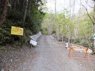 林道を歩いて 左に別荘のような家を見送ると 間もなくクサリが張られたゲートがあって、