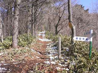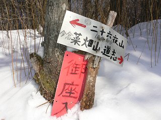 _____(稜線の踏み跡)______________(御座入山の標識)