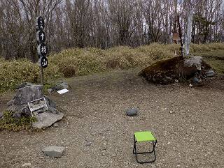 山頂には腰を下ろせる物が無いので、ダイソーで買った200円のパイプイスが役立ちました。
