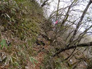 トラバース気味の登山道には 右が崩れかかっている所が多くて、1ヶ所だけ 通過しにくい