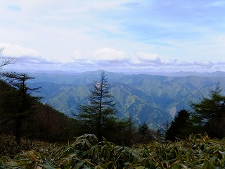十枚峠では静岡県の山並みが見えて、峠から下十枚山方面(南)に少し登った所から
