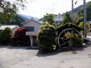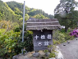 _(2015年に撮影した十枚荘の看板)_______(十枚荘、入り口の右に水車)