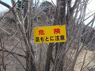 やがて下の注意看板を見たら、その先に 難しい岩場があります。