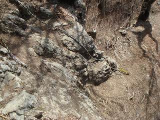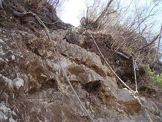 __(数本のロープが下がる岩場)_________(岩場の途中で撮影した画像)