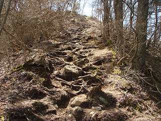金山側の斜面にはハシゴがあるので問題なく下りられますが、十二ヶ岳側の斜面は ほぼ