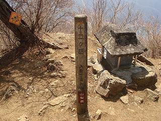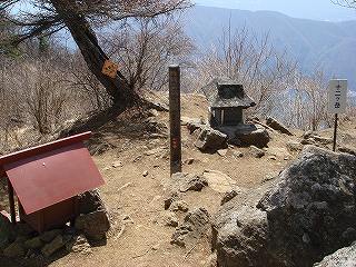 岩場の上で痩せた道を2分ほど歩いたら その先が山頂です。