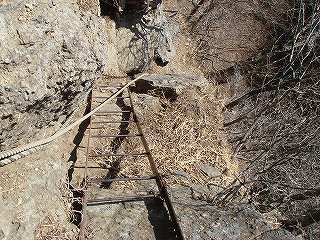 金山側は しっかり固定された鉄製のハシゴなので 簡単に下りられます。