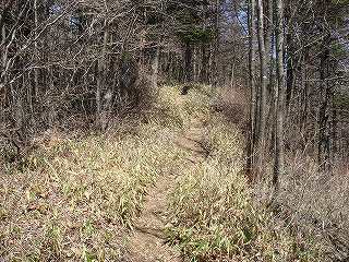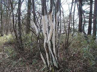 _____(平坦な登山道)__________(ここで見た 鹿に皮を食べられた木)