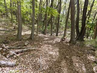 ピークから さらに西に歩いて岩堂峠に着いたら、そこから林道を左に下りて 沢の手前から