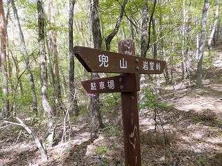 イノシシ園から林道を歩いて行くと、煙火工場を過ぎた所で 右の斜面に登山口があります。