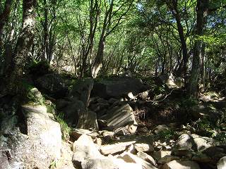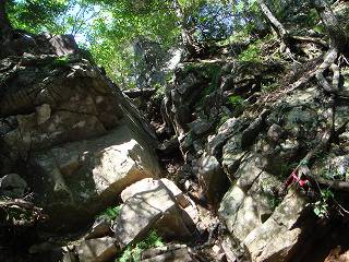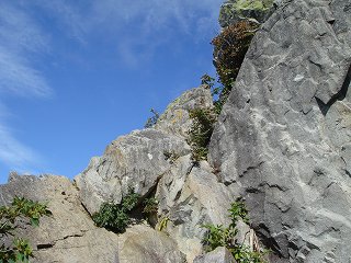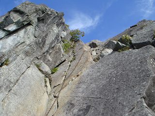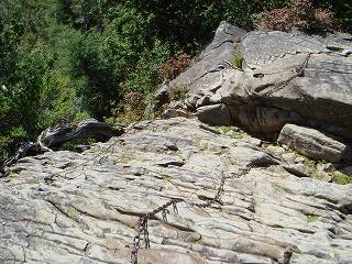 (天狗岩のクサリ場)| 乾徳山(けんとくさん) 2031メートル 2007年9月9日 晴れのち曇り 2002年5月4日 晴れ___- |