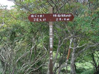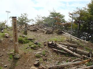 _(山梨百名山の標柱が立つ山頂)___________(山頂に立つ道標)
