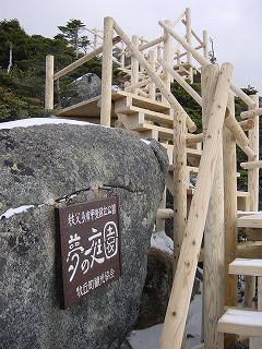 夢の庭園は花崗岩が出た斜面で、そこに 立派な木の階段が設置されています。