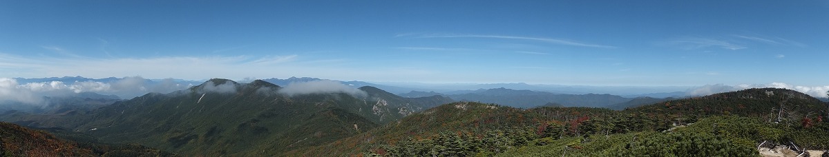 北東にも雲が出てましたが、かろうじて 国師ヶ岳の右奥に甲武信ヶ岳が見えました。