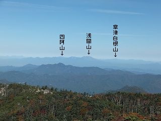 苗場山・ 谷川岳・ 武尊山、さらに双児峰の燧ヶ岳があって 奥白根山と皇海山が見えました。