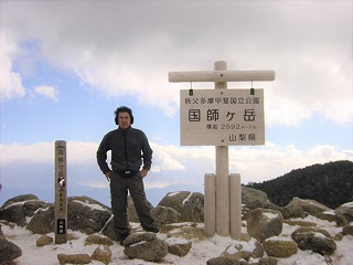 _____(国師ヶ岳の山頂)_______________(山梨百名山の標柱)