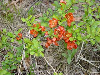 (斜面に咲いていたクサボケ)