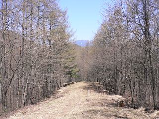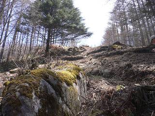 (防火帯の中の急斜面の登山道)