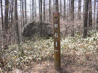 山梨百名山の標柱は 土に埋まっていた部分が出ていて、前回 登った時とは逆を向いて