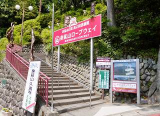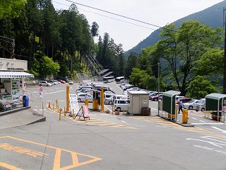 駐車場の左上にあるロープウェー乗り場を見送って 右上にある急坂を登ります。