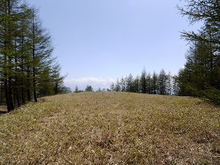 その奥に 木が生えていない笹原が広がっていて、笹原には番線の柵が張られていました。