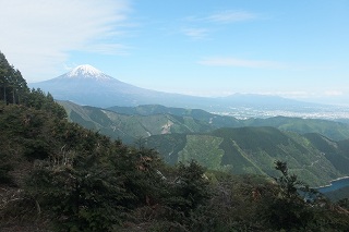 山頂の東側の伐採された所から富士山と駿河湾が見えます。