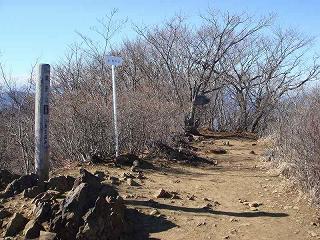 山頂の西側にある寂ショウ尾根の入り口には「この先危険」の注意書きが立っていたので、