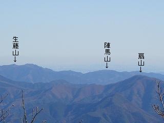 生藤山・ 陣馬山 ・百蔵山・ 扇山・ 高柄山・ 倉岳山が見えて、生藤山と陣馬山の奥に