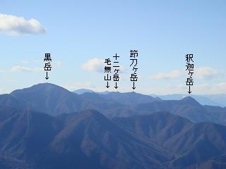 南アルプスの稜線には雲がかかっていて、北に 金峰山と甲武信ヶ岳と雁坂嶺が見えました。