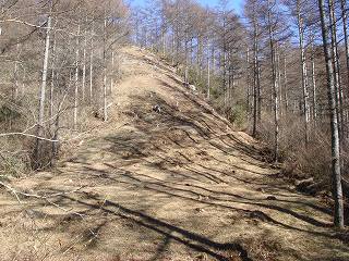 大谷ヶ丸の分岐から防火帯の中を10分登った所で、大谷ヶ丸から稜線を歩いてくる登山道と