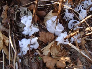 この辺りの登山道には沢山のシモバシラがあって、防火帯に群生していたシモバシラの数は