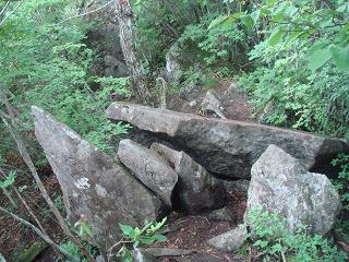 ____(登山道に横たわる岩)___________(岩の間を通る登山道)