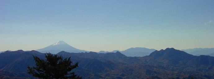 山頂は南から西に開けていて、2002年は御坂山塊の黒岳の右に富士山が見えて、茅ヶ岳の