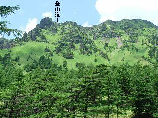 分岐から東に登って行くと すぐに背の高い木が姿を消して、その先に 前掛山の斜面を登る