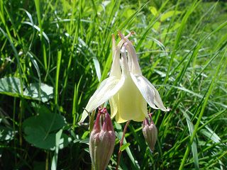 (草すべりに咲いてたキバナノヤマオダマキ)___(稜線付近から見たトーミの頭)