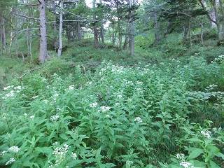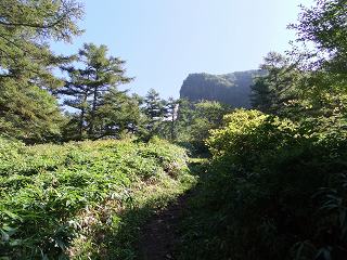 カモシカ平の先では 左上にトーミの頭が見えて、右の林の奥に 前掛山も見えました。