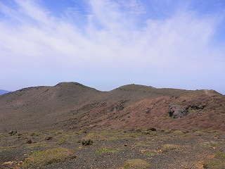 東峰から 先ほどの登山道を戻って、分岐から15分歩いて 阿蘇山の最高地点の高岳に