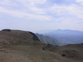 高岳火口壁の分岐から10分歩いた所にある東峰では、東に 根子岳と祖母山が見えて、