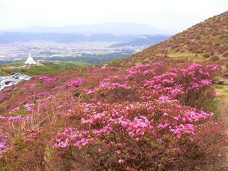 _(ミヤマキリシマの奥に仏舎利塔)_________(満開の花を付けた株)